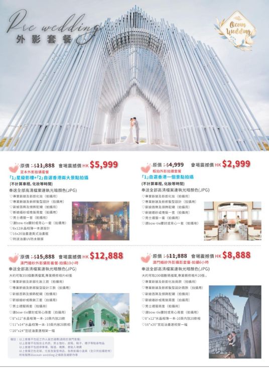 - 客人購買後即不能取消,任何取消即當放棄論,而Ocean Wedding 和 BESPOKE MALL 將不會作任何賠償或退款,請考慮清楚才購買。